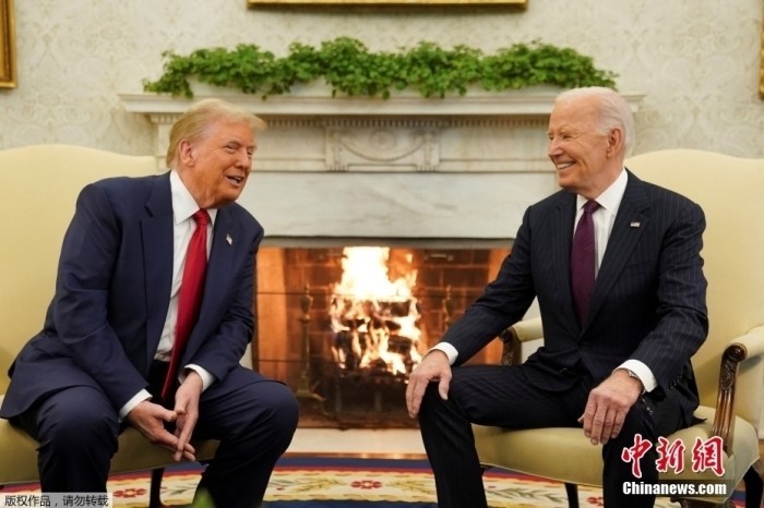 当地时间2024年11月13日,拜登在白宫会见特朗普。